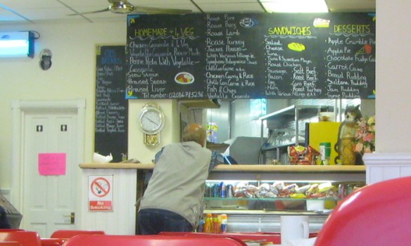 Now, I would never, ever try to compete with Russel Davies’s Eggbaconchipsandbeans, but for once in my life I wanted to at least try to emulate the amazing experiences he must have when he sneaks into a new cafe, camera at the ready, poised to picture another perfect plate of food. So, when I had a morning to spend in Ilford (the less exciting East of London’s East End) I found this little gem of a cafe and, wielding my trusty TX1, entered the premises and uttered for the first time the eternal words: