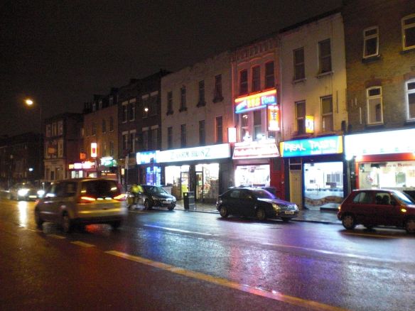 This short strip of Mile End Road in the heart of the East End features 11 fast food joints. The majority are of the halal fried chicken variety, but there’s a chinese takeaway, a pizza shop, a greasy spoon, a sandwich bar and a pub. With other words, for the ca 10000 humans living in the direct vicinity there is no reason ever to venture into a supermarket to buy an apple. Or to cook.